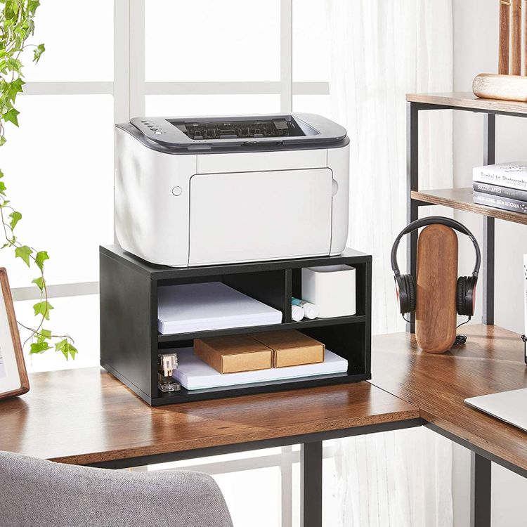 Printer Stand Shelf Wood Office Desktop Compartment Organizer, Black